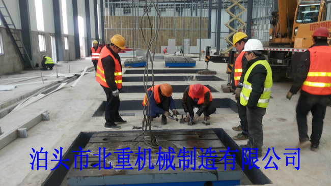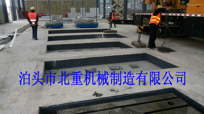 我公司為西門子電機(jī)制造的6件2500*4000電機(jī)試驗(yàn)平臺(tái)安裝中.電機(jī)試驗(yàn)平臺(tái)表面帶有T型槽,方便固定實(shí)驗(yàn)設(shè)備.T型槽工作臺(tái)采用預(yù)埋的安裝形式,這樣的優(yōu)點(diǎn)是:1.不會(huì)出現(xiàn)平臺(tái)在實(shí)驗(yàn)震動(dòng)下的位移.2.減小震動(dòng)輻射范圍.3.使試驗(yàn)平臺(tái)的壽命和實(shí)驗(yàn)效果大大提高.