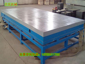鑄鐵平臺外觀基本上是箱體式,工作面有長方形、正方形或圓形,材料為HT200-300,QT400-600,采用刮研工藝,工作面上可加工V形、T形、 U形槽、燕尾槽、圓孔、長孔等,是用于工件、設(shè)備檢測、劃線、裝配、焊接、組裝、鉚焊的平面基準量具。